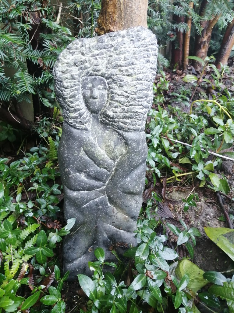 Na 2 stenen in het zachte speksteen wilde ik graag “echt” beeldhouwen. De cursusleidster gaf me een stuk van een dorpel van Arduin, ofwel Belgisch hardsteen. Met houtbeitels kom je dan niet ver. Arduin ruikt naar rotte eieren als je het bewerkt, hetgeen herhaaldelijk tot een bedenkelijke blik van mijn mede cursisten leidde. Het beeld bleef vrij abstract. H 40 cm x b 16 cm x d 5 cm, ong. 8 kg.