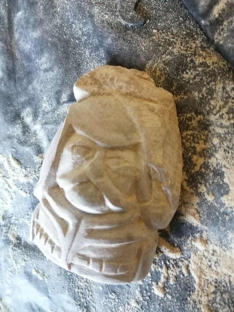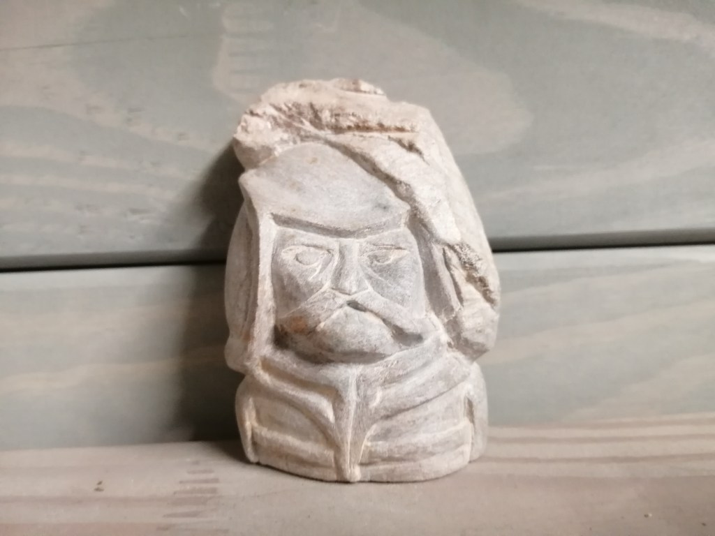 Nors kijkend, boezemt deze “loper” zijn tegenstanders sowieso al angst in. Bovendien completeert hij de 4 Braziliaans spekstenen lopers uit het schaakstuk. H 7 cm x b 5 cm x d 3 cm, ong 300 gr.