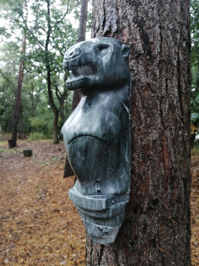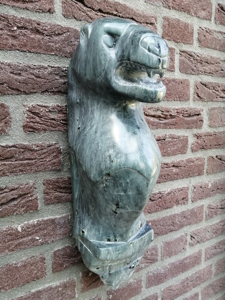 Deze afschrikwekkende panter is gemaakt in Romeinse stijl. Het Afrikaans speksteen zorgt voor bijzondere kleurschakeringen en geeft het beeld een authentiek effect. H 48 cm x b 14 cm x d 17 cm, ong. 10 kg.