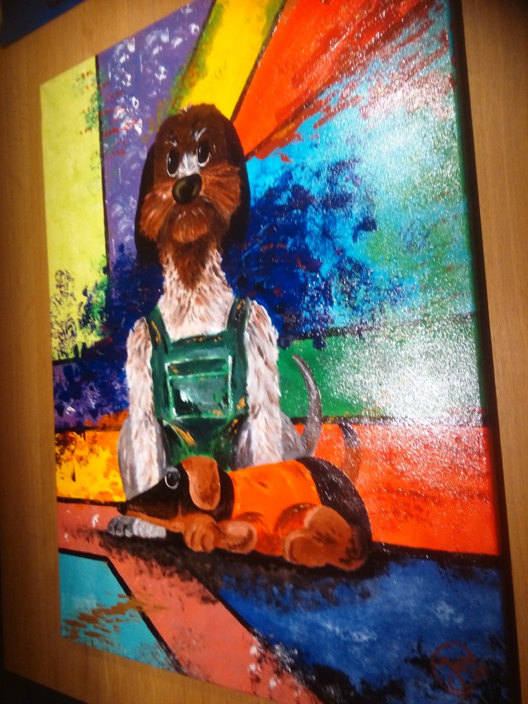 In opdracht gemaakt met als thema “kleurrijk”. Het waren dikke vrienden deze 2 rakkers. Helaas zijn ze inmiddels niet meer onder ons….