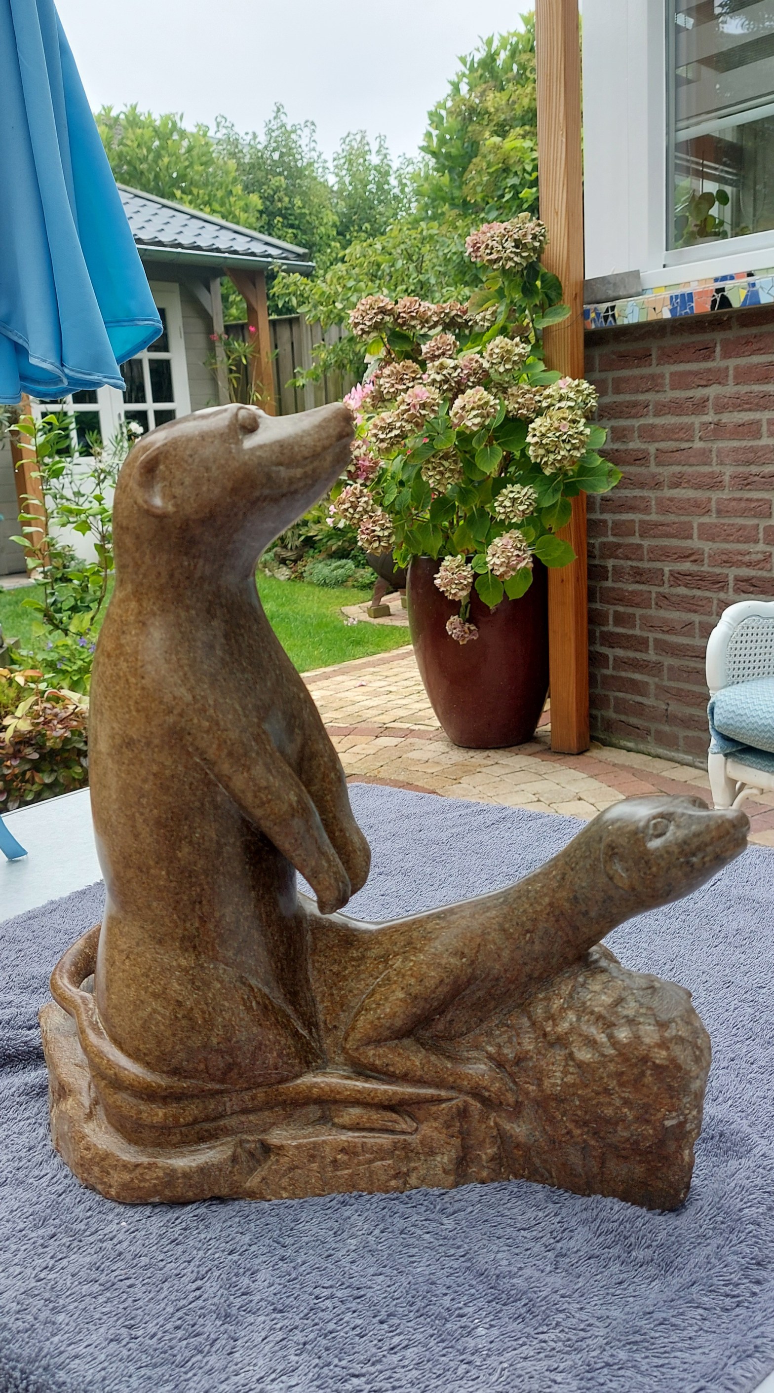 Wanneer is iets een uitdaging? Het brok Braziliaans speksteen zou volgens deskundigen niet geschikt zijn om er 2 stokstaartjes uit te halen. Volgens mijn kameraad “Hagje” is het echter prima gelukt en kijkt hij er nog dagelijks met genoegen naar.