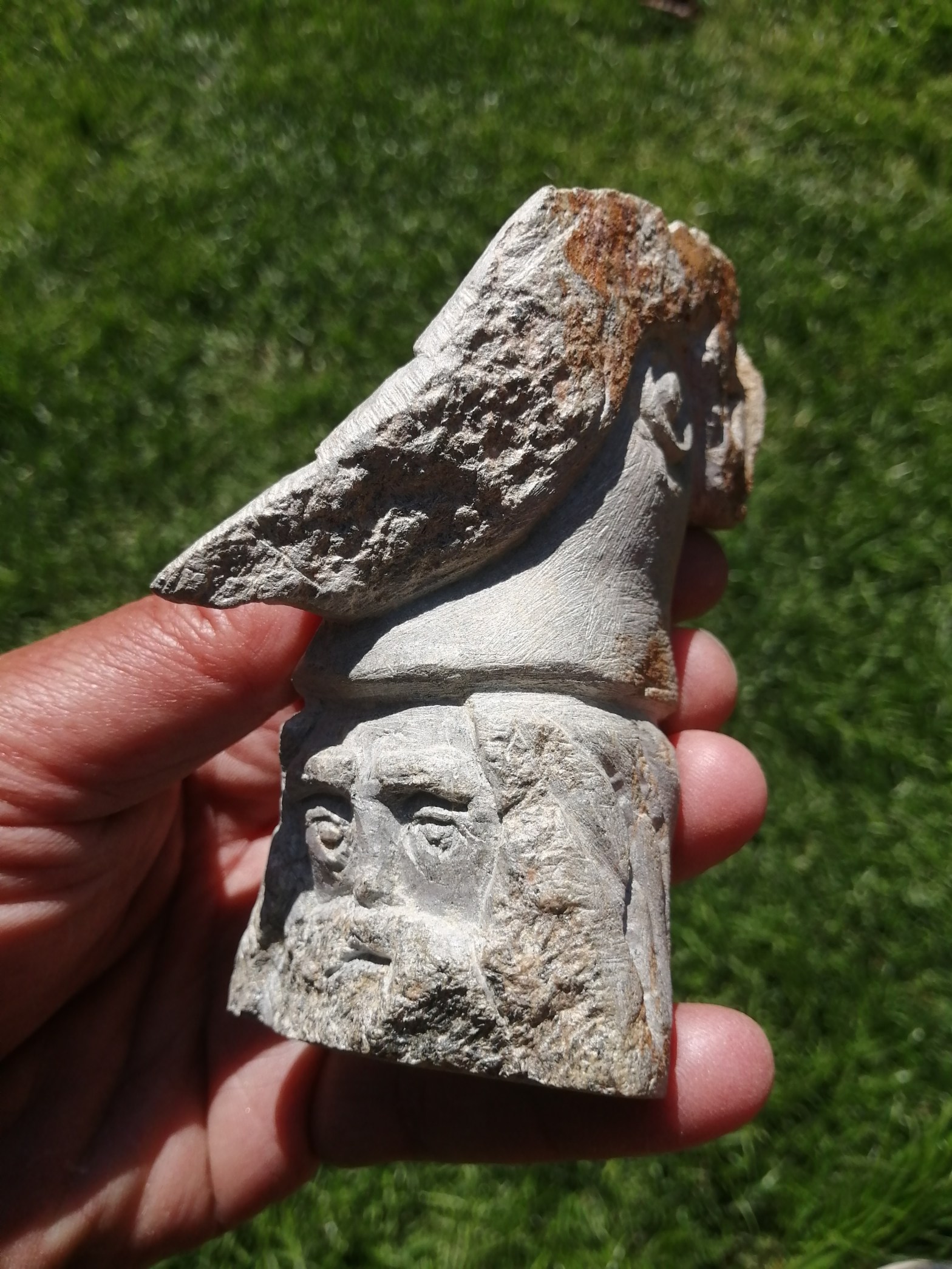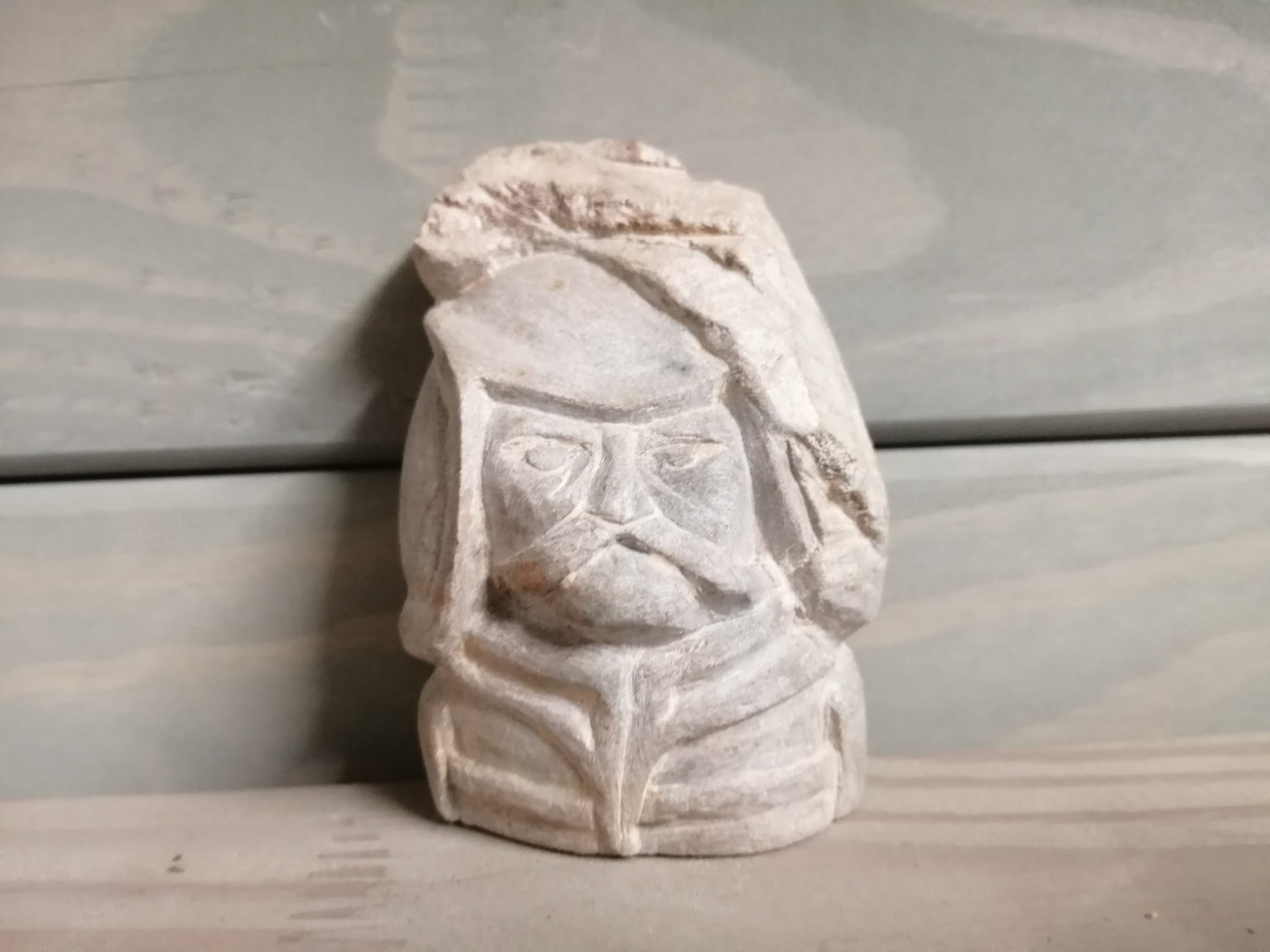 Mijn neef gaf me een rechthoekig blok Arduin. Aan die harde Belgische steensoort had ik nog gemengde gevoelens (zie “3. Stormwind”). Het verging me nu, met betere beitels, echter een stuk beter. Mijn lieve nichtje Marinelle was blij met deze “Eternal Woman”, die goedgemutst en vol zelfvertrouwen de wijde wereld in blikt.