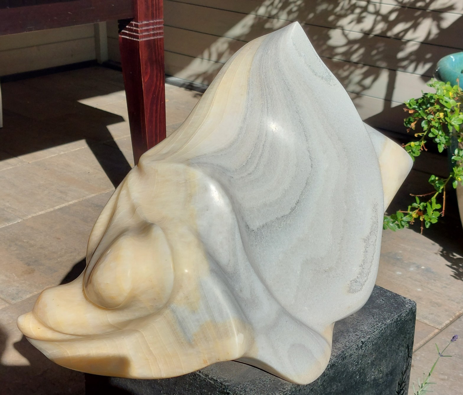 Deze abstracte golf van Mexicaans onyx zou nog veel meer namen kunnen hebben, Het kan op diverse wijzen geplaatst worden en is mede daardoor erg verrassend. Let op de schitterende lijnen van de diverse lagen in de onyx. Op sommige plekken enigszins transparant als de zon schijnt. B 57 cm x h 38 cm xMeerMeer lezen over “29. The Wave.”