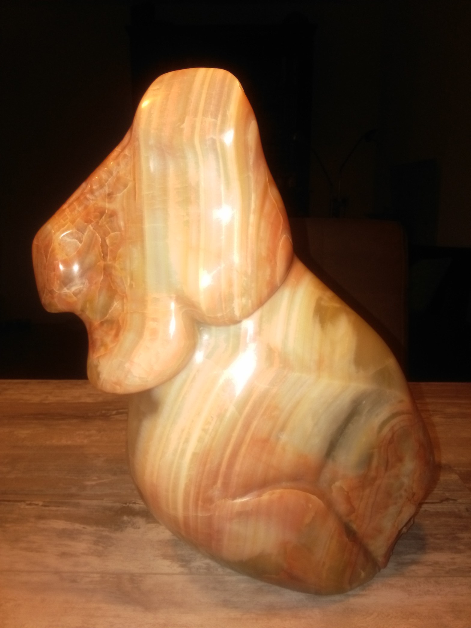 Een haas gemaakt van speksteen uit India. Hij heeft zijn weg gevonden naar mijn neef en tevens ook goede vrind Rens. Vanzelfsprekend ook ” ‘nen hoas”, hetgeen vanzelfsprekend oud Brabants dialect is voor “een haas”.